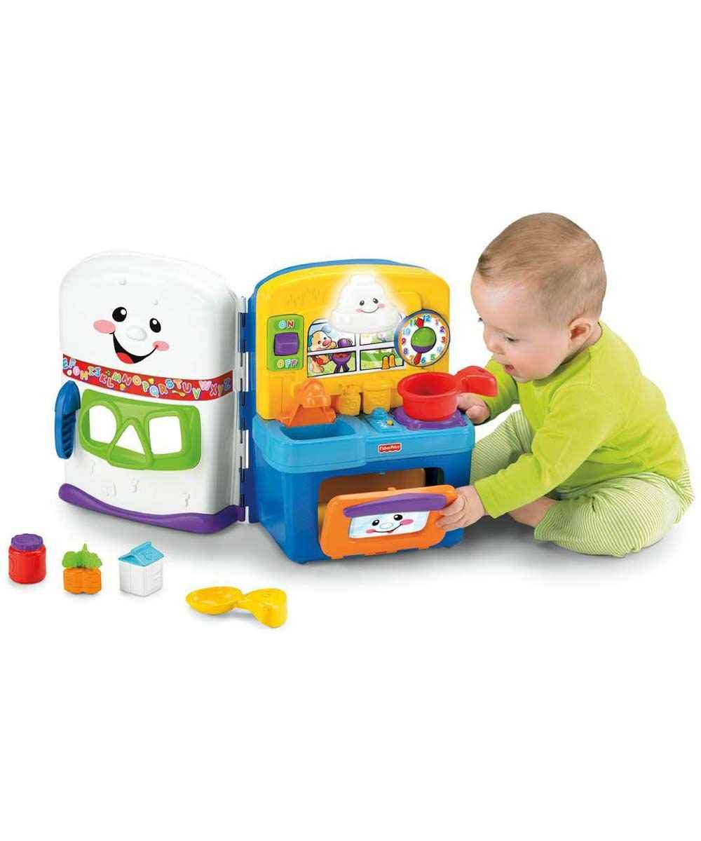 Cook up some learning fun with busy activities inside and out, front and back. Open and close the refrigerator, flip the light switch, stir the soup, check to see what’s cooking in the oven ? all while enjoying music, sounds, light-up fun, four modes of play, and more than 20 sing-along songs and musical activities!