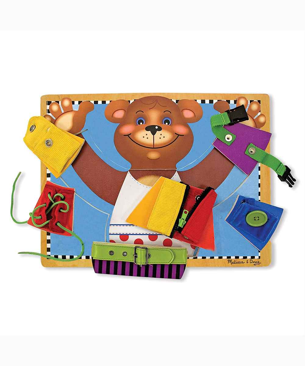 This wooden bear is always smiling, but he’s happiest when fully dressed! Getting dressed won’t be such a puzzle once zipping, buckling, snapping, lacing and tying, and other dressing skills are mastered. Each skill is contained on a separate, removable wooden puzzle piece for easy practice. Develop fine motor and life skills with this great activity.This wooden bear is always smiling, but he’s happiest when fully dressed! Getting dressed won’t be such a puzzle once zipping, buckling, snapping, lacing and tying, and other dressing skills are mastered. Each skill is contained on a separate, removable wooden puzzle piece for easy practice. Develop fine motor and life skills with this great activity.