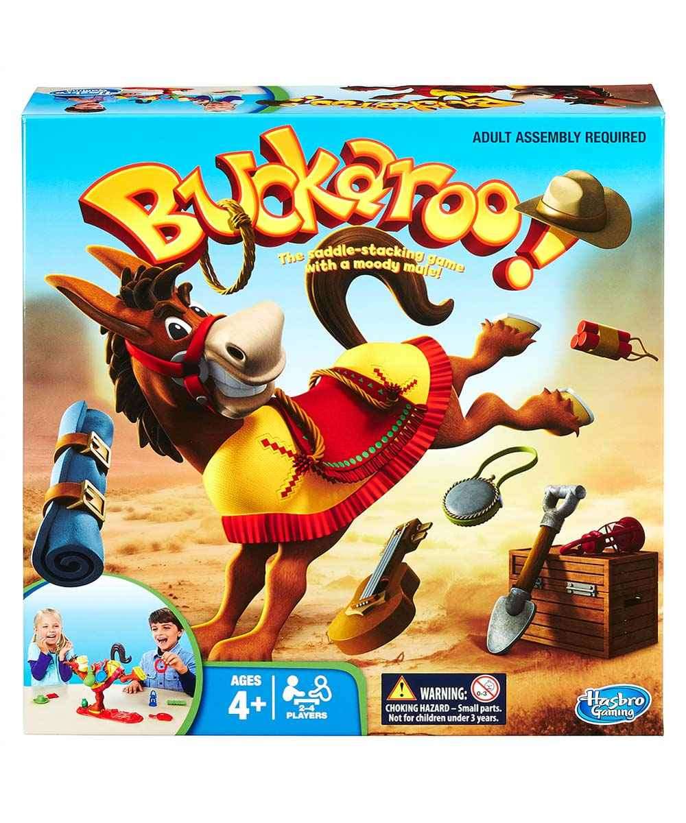 The classic balancing game of suspense and surprise. Load up the moody mule as much as you can, but be careful he might ‘Buckaroo’ !