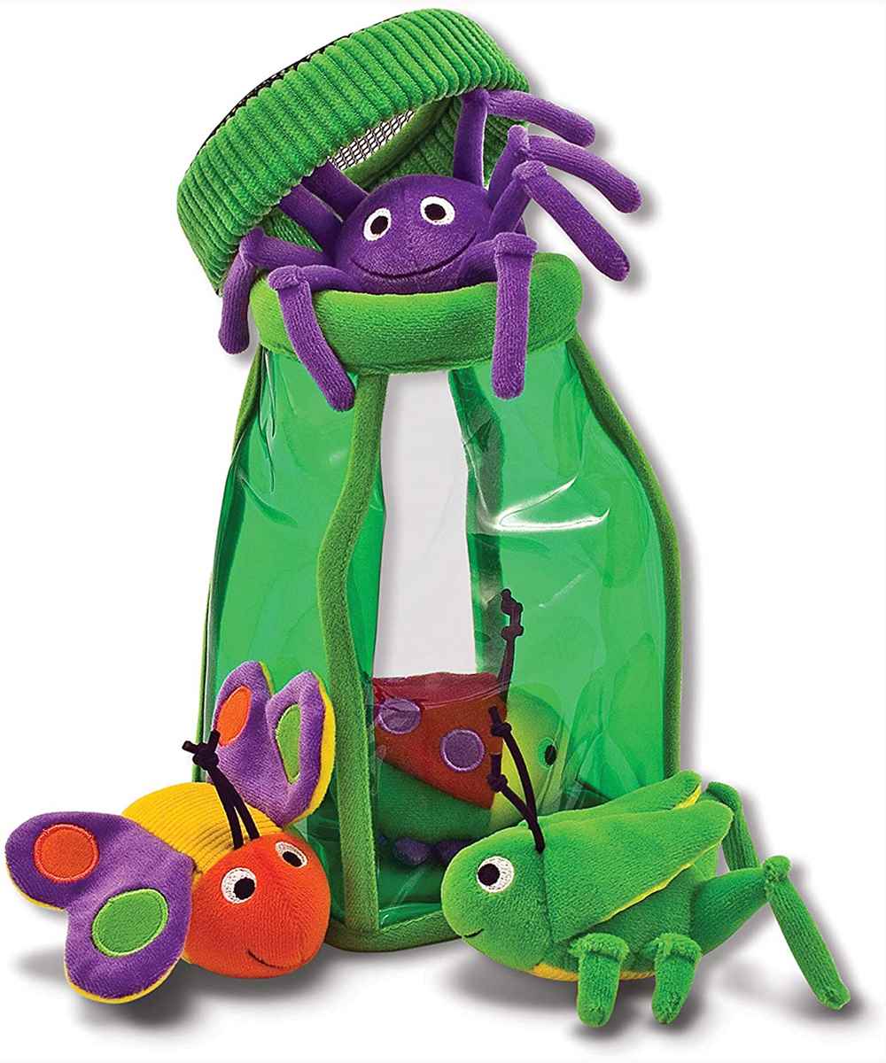 Hours of creepy-crawly fun await as your toddler delights in taking out the soft, plush spider, butterfly, ladybug and grasshopper. Manipulating these critters is even more fun because each one has a distinctive sound, jingling or crinkling just for giggles The child-safe “jug” has a mesh top attached to keep the collection together when the bugs go back in. Pediatricians recommend toys that inspire hands-on imaginative thinking. This toy makes a great gift for 18-month-olds, 2-year-olds, 3-year-olds, and up. It’s a perfect gift for baby showers, birthdays, and special occasions. Add a Melissa & Doug First Bead Maze to round out the play experience and give kids another engaging option for screen-free fun.
