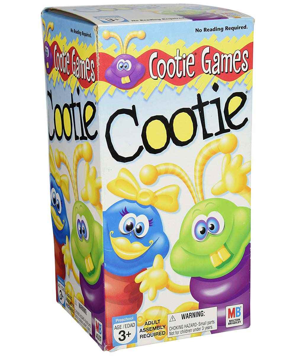he bugs’ faces are a bit goofier than before, but the object remains the same: to be the first to create your own Cootie. Just arrange the bug parts on the fold-out board and roll the die to win the parts you need. (Roll a 1 and pick a body, roll a 2 and select a head, roll a 3, etc.) Body parts are made of hard plastic and come in various mix-and-match colors. Small pieces are a danger to young children, so supervision is recommended.