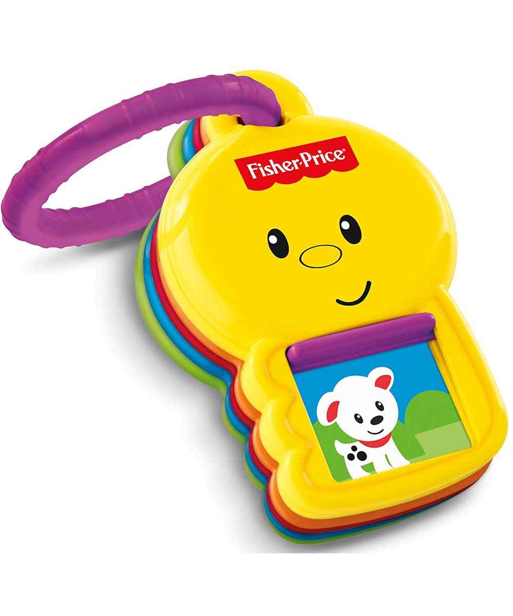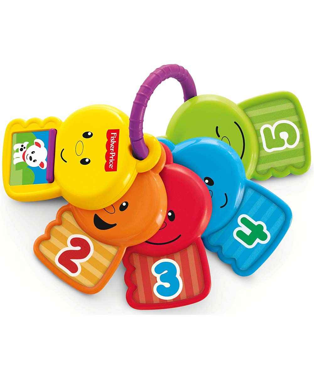 The Count & Discover Keys are a set of 5 brightly colored keys that strengthens baby’s fine motor skills and eye-hand coordination. The counting is reinforced with numbers corresponding on the front and back of each key which promotes understanding of size and number relationships. Each key is a unique color with molded details and textures for baby to explore. One key includes a slider for peek-a-boo fun.
