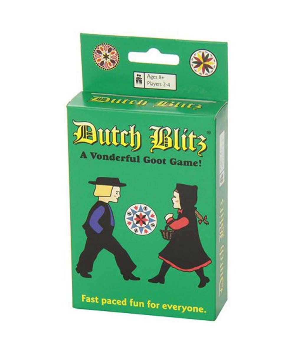 Developed in Pennsylvania Dutch country, Dutch Blitz is a card game that’s exciting to play and easy to learn. Perfect for family game nights, or to play with a group of good friends, you’ll enjoy spirited competition as you try to get rid of your 10-card Blitz pile before anybody else. Not as easy as it sounds, though, because players don’t take turns. You have to be the fastest to place your cards in sequence and in the same respective colors on the center Dutch piles while using as many cards from your Blitz Pile as possible. When your Blitz Pile has been exhausted, you’ve won. The original game includes four decks of 4 colorful playing cards and easy-to-follow instructions, while the expansion adds another four decks of different colors. Combine the packs to play with up to 8 players.