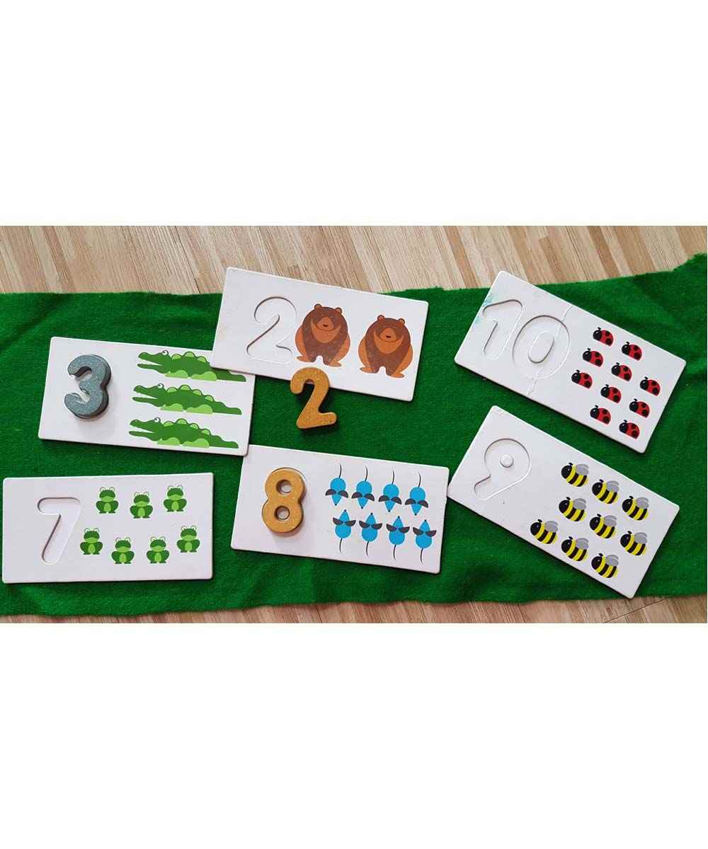 Help your children to learn 1-10 with this fab, tactile counting game. There are ten numbered blocks with dot indents on the back that tally up with the number. These match up with another ten blocks that have a pictorial representation of the number on one side – one elephant, two houses, three trees – and on the back is an indented written number. Children will enjoy the sensation of tracing their finger along the numbers and words, helping them to learn their numbers and develop their writing skills.