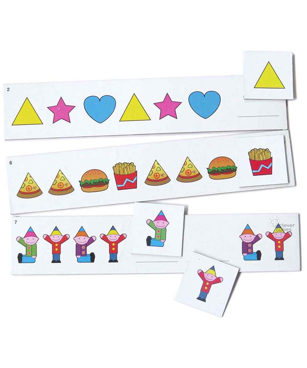 Fill in the random blanks as per the pattern. This unique pattern strip helps children sharpen their shape, colour and pattern recognition skills.