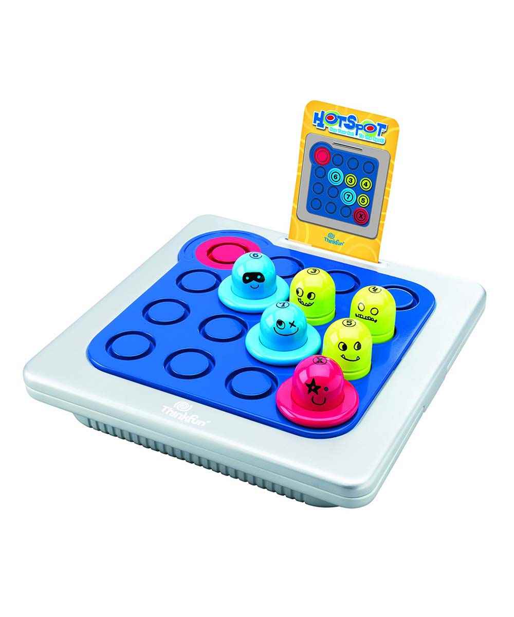 In this game of strategy and logic, the goal is to hop your red robot over obstacles to reach the red spot on one corner of the game board. Jump over blue and green robots to reach your goal.