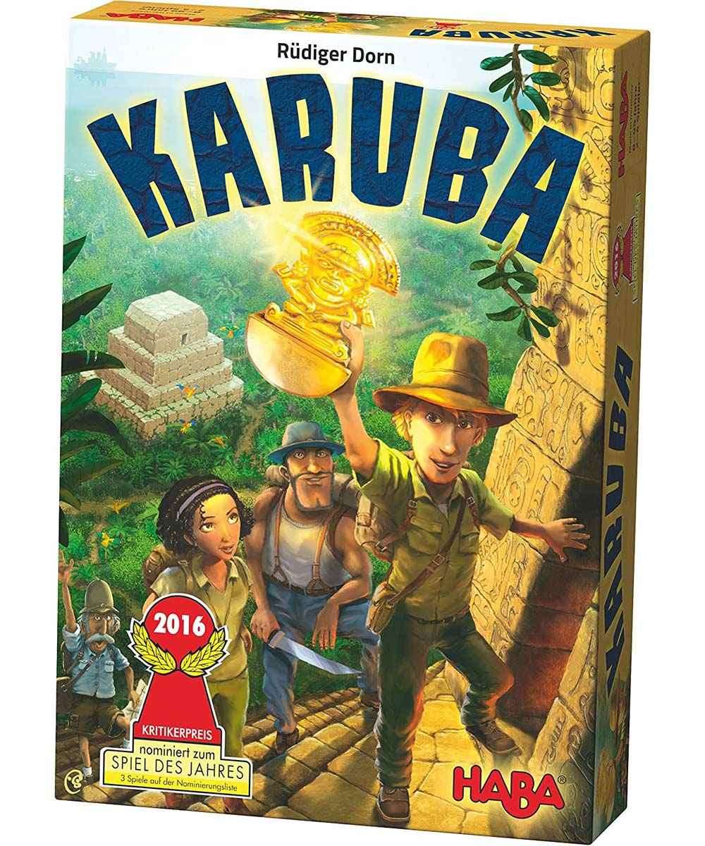 Many moons have come and gone since your boats departed on the journey to Karuba. Once you arrive on the island, each player will lead an expedition team of four adventurers. Now you just have to navigate your way through the dense jungle to make it to the temples. “Just” may be something of an understatement; the ancient jungle trails have to be found and uncovered first! Hurry up and be the first to reach the temples to collect the most valuable treasures. Many paths have dead ends and you need to be patient to find the right/best way (through the jungle). Look! A gold nugget! You can pick it up and collect it, same applies to the shiny crystals along the paths.