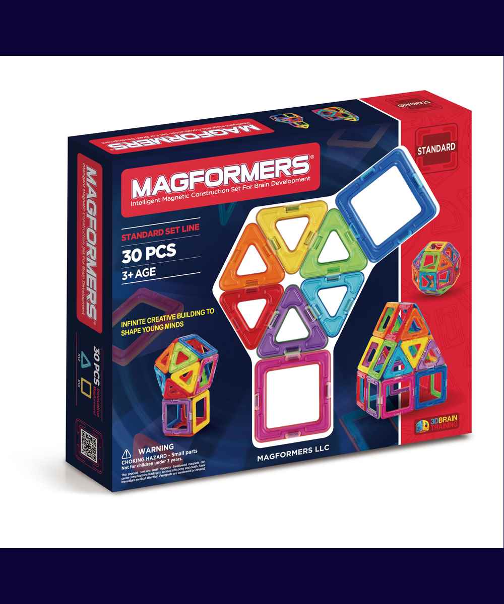 Create 3D structures from 2D nets with the award winning Rainbow 30Pc Set. Arriving with squares and triangles that are perfect for little fingers to start building a ‘magic ball’, houses, towers and much more!