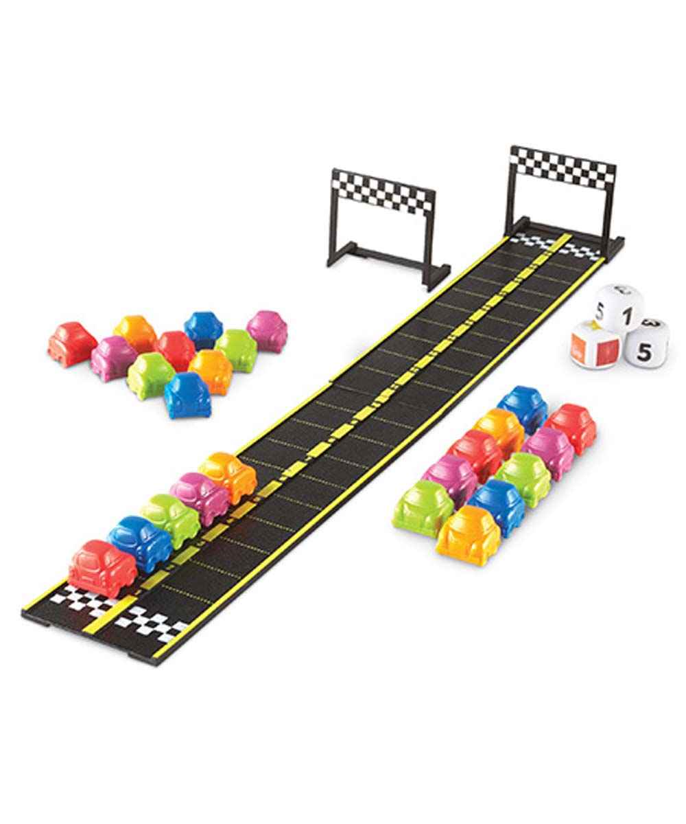 These colorful cars are ready to rev their engines for early math learning fun. Attach the finish line to the track numbered 1–10 for a high-octane counting race up to 10, or push it into overdrive by racing to 20! Start your engines to learn counting 1–20, early addition, number sequencing, patterning, and more!