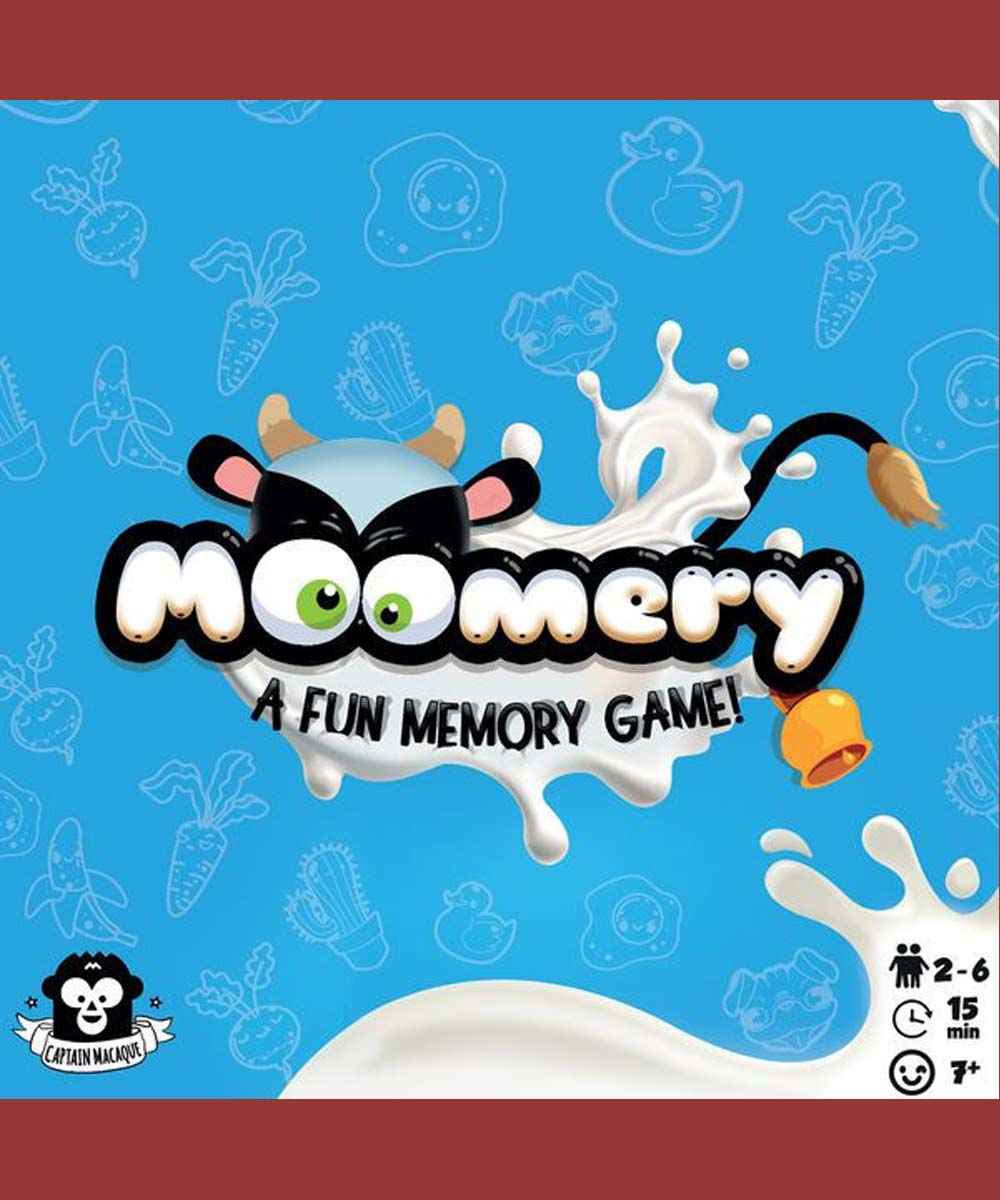 Moomery is a memory game in which you not only have to prove your brain skills to win the game, but also your speed. One player flips a card from the stack and keeps on doing that, until one person sees a card they remember to have seen before (has been flipped before).