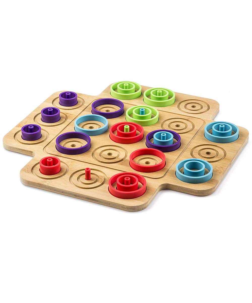 Addicted to brainy challenges? Then fire up your competitive side with Otrio, the head-to-head strategy game! To win, get three pieces of your color in a row based upon similar size; lined up in ascending or descending order; or within the same space as three concentric pieces. The rules are simple but the game is complex! Depending on the wit of your opponent, you may need to sharpen your strategic skills and exercise critical thinking!