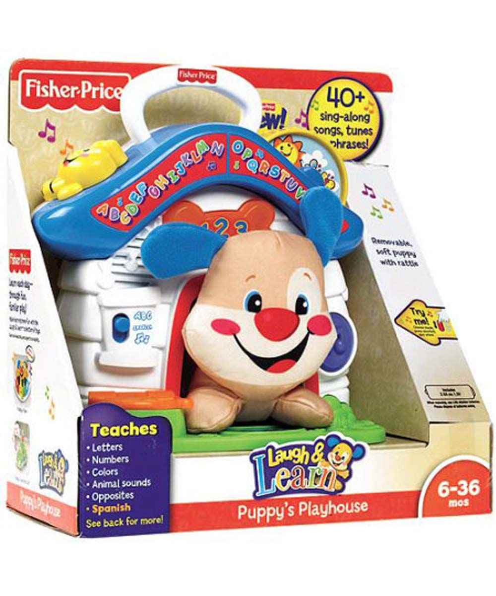 A cuddly puppy friend welcomes your baby to the Fisher-Price Laugh And Learn Playhouse ? a puppy playhouse full of fun and learning! Busy activities and sing-along songs help teach ABCs, 123s, colors, opposites, greetings and more. The soft puppy friend is incredibly fun to shake and rattle, helping baby understand cause and effect.