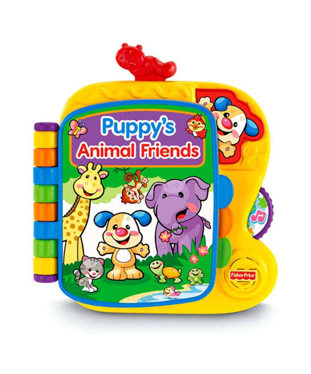 Puppy cant wait to share a story with baby! Hear the story read aloud & follow along by turning pages. Slide the bookworm to play peek-a-boo with puppy & hear fun sounds & phrases. Roll the spinner for sing-along learning songs & animal sounds. All along the way, meet lots of friends!!