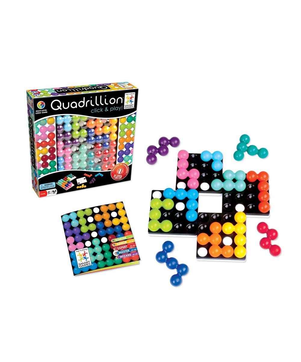 Play Quadrillion by simply clicking the 4 magnetic grids together in any order to create your personal game board. The object of the game is to fit the 12 colored puzzle pieces on the game board you’ve just created. All possible board configurations can be solved, sometimes with thousands of variations, so you will never run out of challenges. The big, sturdy puzzle pieces are perfect for players of all ages.Khushi Online Library is Mumbai’s best library for renting branded toys, books and board games. If you wish to rent online a specific toy, book or board game and you have difficulty in finding it on our online library, then please write to admin@khushionline.in, we will be happy to help.