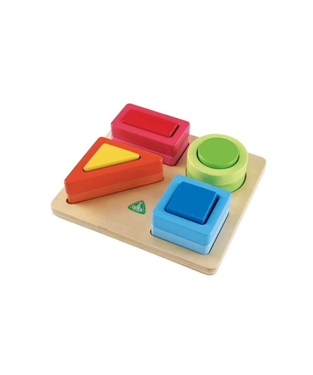 Learn all about different shapes with this colourful wooden set that features chunky wooden pieces to fit together. Perfect for sorting, matching and colour recognition, children can discover triangles, squares, cylinders, circles, cubes and more! Suitable from 2 years. Quick Facts: – Includes a wooden tray with 12 colourful wooden shapes – Chunky shapes are easy for little hands to grip – Helps with shape recognition, sorting, matching and colour recognition.