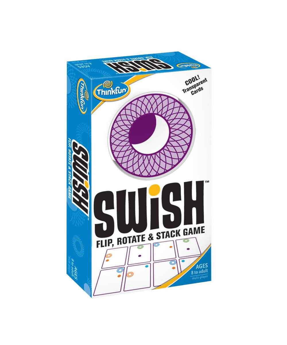 Swish is a spatial card game that challenges you to be the first to make matches, or “Swishes.” Swishes are made by stacking as few as two or as many as 12 cards so that every ball swishes into a hoop of the same color. The player with the most matches at the end of the game wins.
