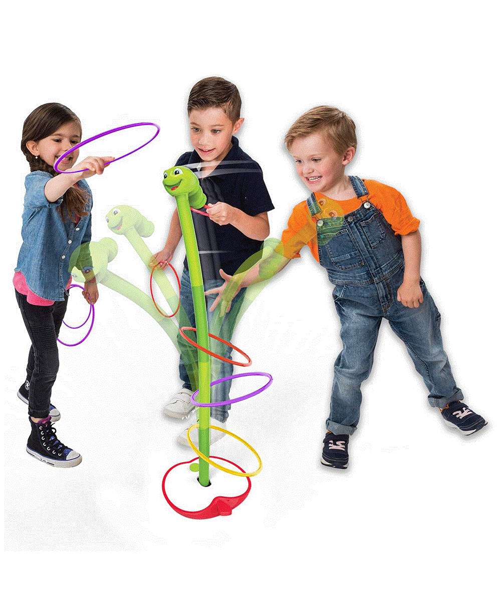 Wobbles the Worm has fallen out of the apple tree and he’s all dizzy! As Wobbles the wiggly worm twists and turns, kids will have a blast trying to loop their colorful hoops over his smiling, wobbly head. This ring toss game for kids is a fun and challenging way to encourage young children to get up and move while helping them to develop important skills such as hand-eye coordination, timing and patience. The Wobbly Worm makes a great gift for children aged three and up and can be enjoyed by the whole family!